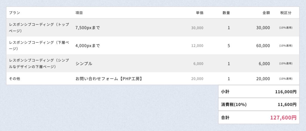 - Photoshopのデザインデータでご依頼の場合は、コーディングプラン合計金額の20%が加算されます。